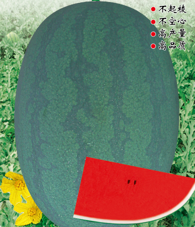 ■ 特征特性 :早熟種,雌花開放果實(shí)成熟28天左右。全生育期90天左右。植株長(zhǎng)勢(shì)穩(wěn)健,抗病抗逆性強(qiáng),適應(yīng)性廣,易坐果。果實(shí)橢圓形,果皮墨綠色底上覆暗條帶,果面光滑無(wú)棱帶蠟粉。瓤色深紅,瓤質(zhì)酥脆,中心糖14%左右,口感好,風(fēng)味佳。平均單果重8-10kg左右,大者20kg以上(特殊栽培),一般畝產(chǎn)6000公斤以上。皮厚1.0cm左右,果皮硬度強(qiáng),耐儲(chǔ)運(yùn)。