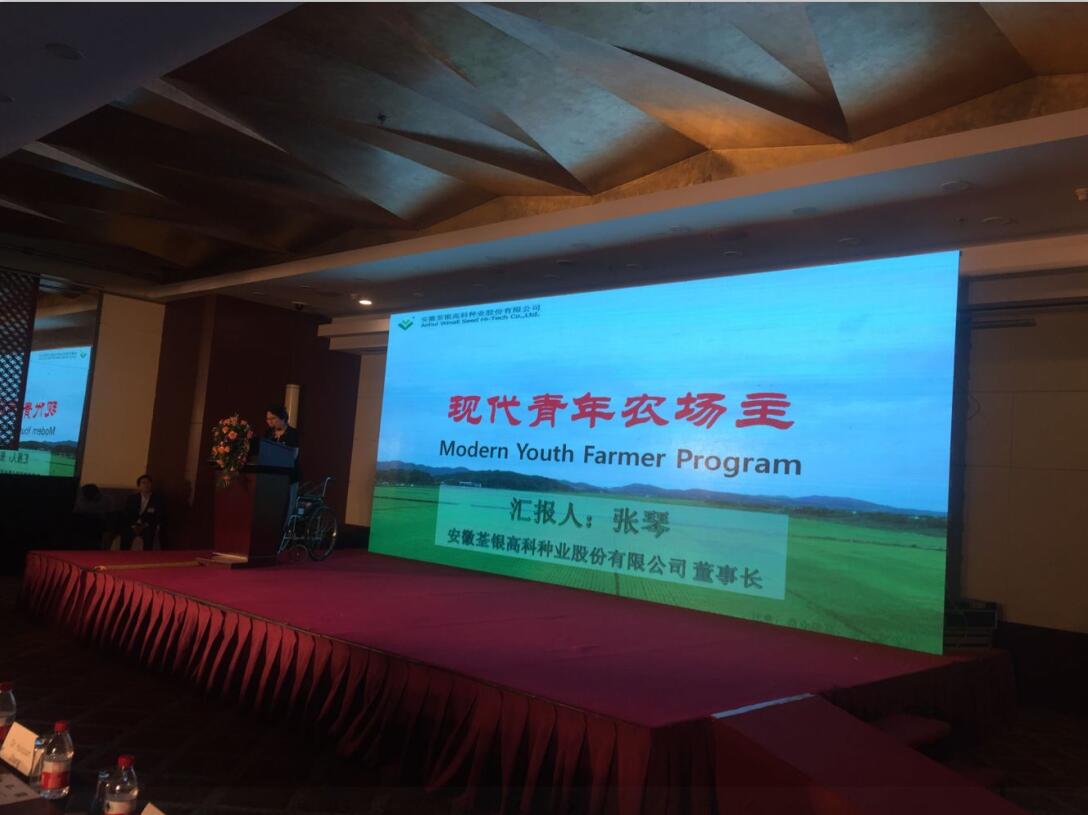 張琴董事長的發(fā)言著重介紹了由荃銀高科發(fā)起的“現(xiàn)代青年農(nóng)場主”培養(yǎng)計劃,從農(nóng)業(yè)企業(yè)的角度闡述了中國新型職業(yè)農(nóng)民培養(yǎng)的必要性和道路艱辛。她指出,荃銀高科作為國內(nèi)領先的種業(yè)企業(yè),有躬耕于壟畝的農(nóng)業(yè)情懷,有“良種良法配套”的發(fā)展需求,更有實現(xiàn)“全贏”的價值觀,于2012年發(fā)起企業(yè)社會責任項目“現(xiàn)代青年農(nóng)場主”,培養(yǎng)定位為:現(xiàn)代農(nóng)業(yè)的實踐者、糧食生產(chǎn)的貢獻者,美好鄉(xiāng)村的貢獻者、基層政權的鞏固者、國際合作的促進者。為此,荃銀高科做出了很多的努力,也得到了社會各界的支持幫助和肯定。她強調,中國農(nóng)業(yè)現(xiàn)代化發(fā)展道路之多艱,需要社會各界有識之士的共同努力。荃銀高科也將本著開放、合作、共贏的發(fā)展理念,希望越來越多的人參與到“現(xiàn)代青年農(nóng)場主”培養(yǎng)工作中來,共同推進中國新型職業(yè)農(nóng)民培養(yǎng)工作。