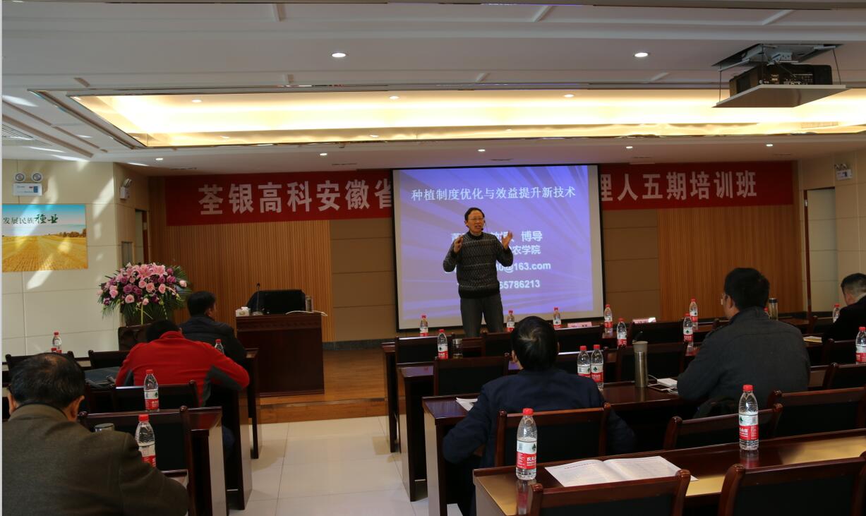 2017年11月27日,安徽省首屆農(nóng)業(yè)職業(yè)經(jīng)理人第五期培訓班在荃銀高科六樓多功能廳正式開課。來自全省各地的50位從事糧油種植的家庭農(nóng)場主、農(nóng)業(yè)合作社及農(nóng)業(yè)企業(yè)負責人參加了培訓。