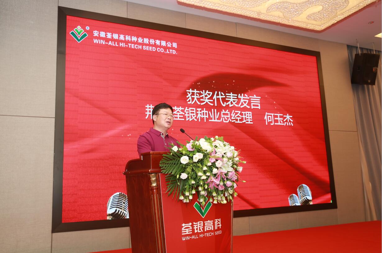 荃銀高科董事、常務副總、安徽張海銀種業基金會副理事長王玉林先生為“荃銀種業促進獎”三等獎獲獎者頒獎