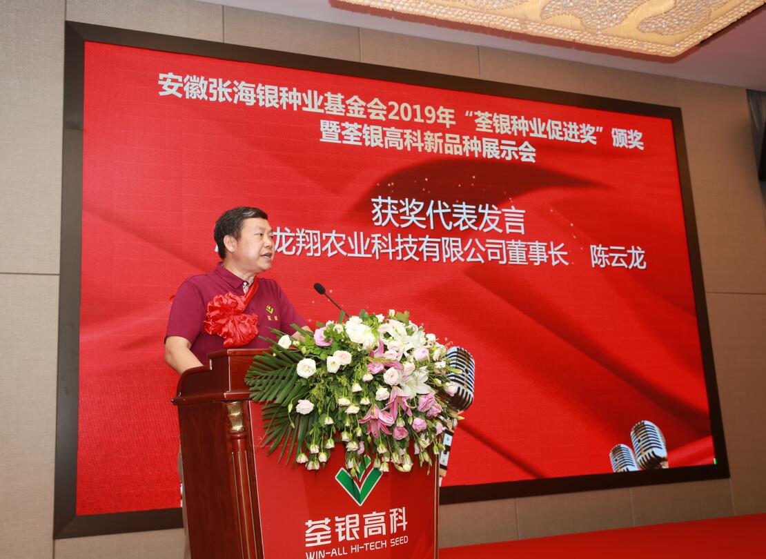 中國種業十大功勛人物、荃銀高科創始人、安徽張海銀種業基金會理事長張海銀先生為“荃銀種業促進獎”一等獎獲獎者頒獎